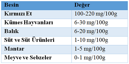 Farkında olunmasa da l-karnitin diyetimizin bir parçasıdır. Gıdaların çoğunda farklı oranlarda bulunmakta ve gün içerisinde devamlı olarak tüketilmektedir. Kırmızı et (örneğin: kuzu eti, geyik eti ve dana eti) l-karnitin açısından zengindir. Balık, kümes hayvanları, süt ve anne sütü daha küçük miktarlarda l-karnitin içerirken, bitkisel besinler yok denecek kadar az miktarlarda l-karnitin içermektedirler (3). Besinlerle birlikte alınan L-karnitin miktarı günlük 60 ile 200 mg arasında değişmektedir (1). Bu değer vejetaryenlerde çok daha düşüktür. Tablo 1’ de günlük tüketilen besinlerin karnitin değerleri verilmiştir.