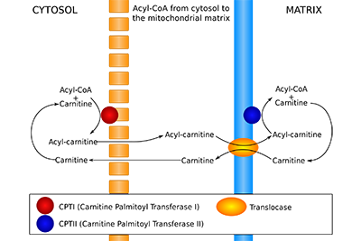 Önce bir asil grubu sitozolik koenzim A karnitine bağlanarak, karnitin asiltransferaz 1 tarafından transfer edilir. Böylece O-asilkarnitin meydana gelmiş olur. İkinci olarak asilkarnitin grubu membranı geçerek mitokondri matriksine taşınır. Matrikste mitokondri membranının iç yüzeyinde bulunan karnitin asiltransferaz 2 tarafından koenzim A taşıyıcı olan karnitinden ayrılır. Böylece mitokondri içine giren koenzim A yağ yakımı için hazır hale gelmiş olur. Bu sırada işlevini tamamlayan karnitin, tekrar sitozole geçerek transfer işlevini tekrarlar. Bu döngü sayesinde hücre içi enerji sağlanması için yağ hücresi mitokondrinin içine girmiş olur. (2)